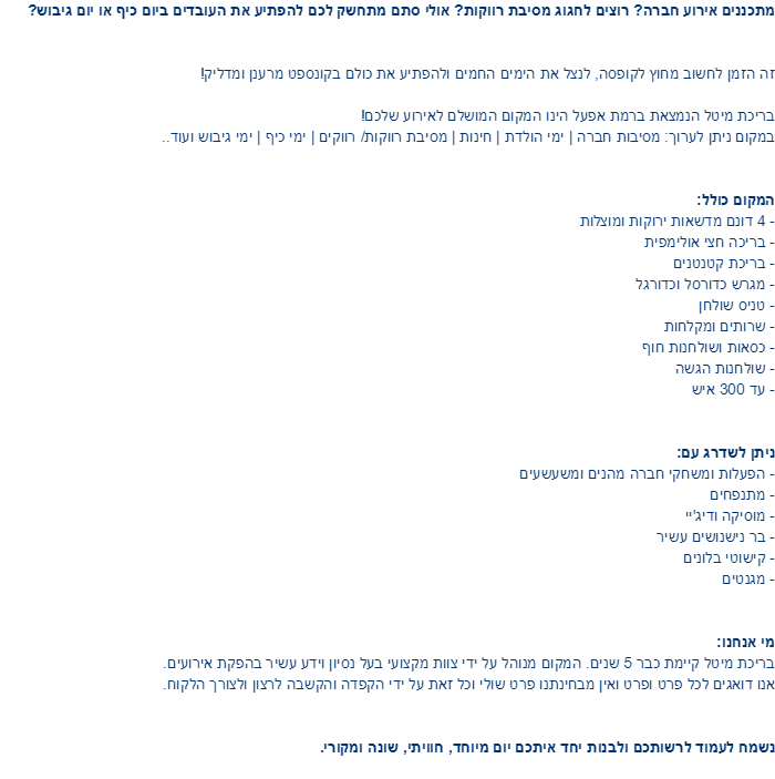 המקום המושלם לאירוע - בריכת מיטל