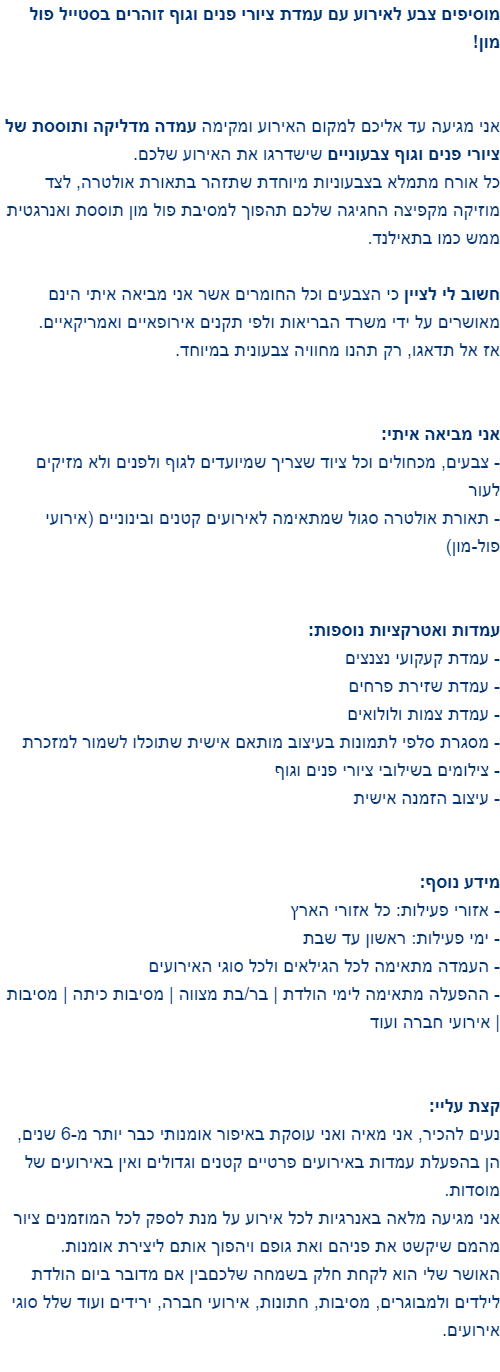 הפעלה מדליקה של לול עם תפאורה מהפנטת, משחקים, מוזיקה וכל מה שבנות אוהבות. אופציה לשילוב ספא