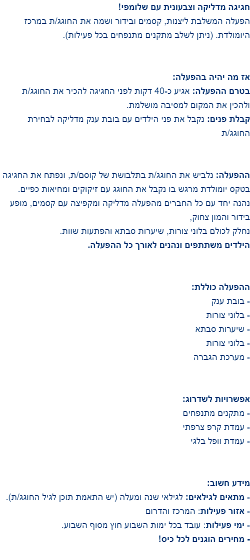 ענבלי הפעלות ליומולדת