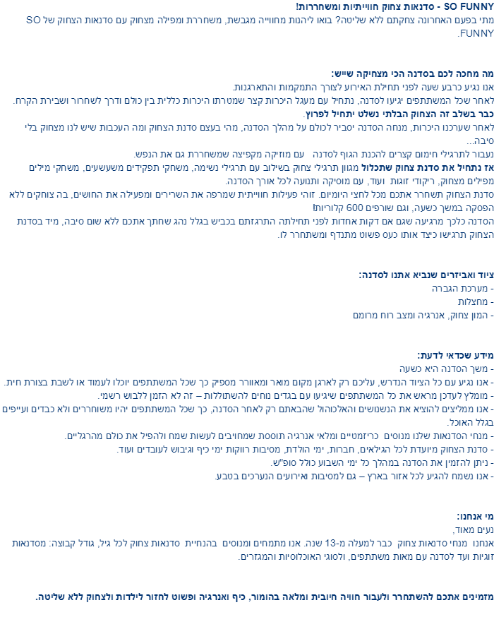 שוברים את הגבולות עם חווויה מרגשת, מצחיקה ומהנה שנתפרה במיוחד עבורכם ועליכם.