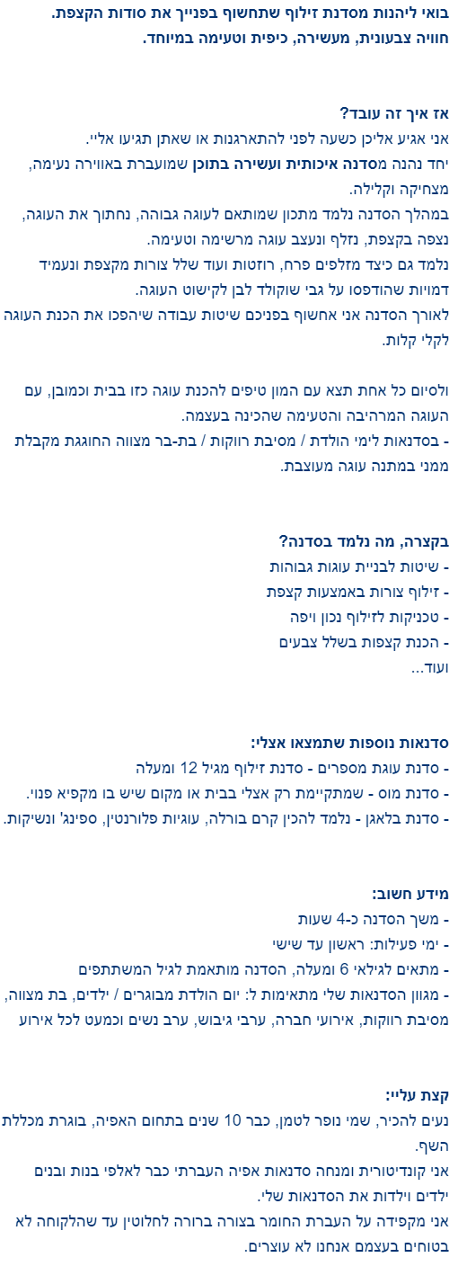 המתוקים של נופר - סדנת זילוף עוגה
