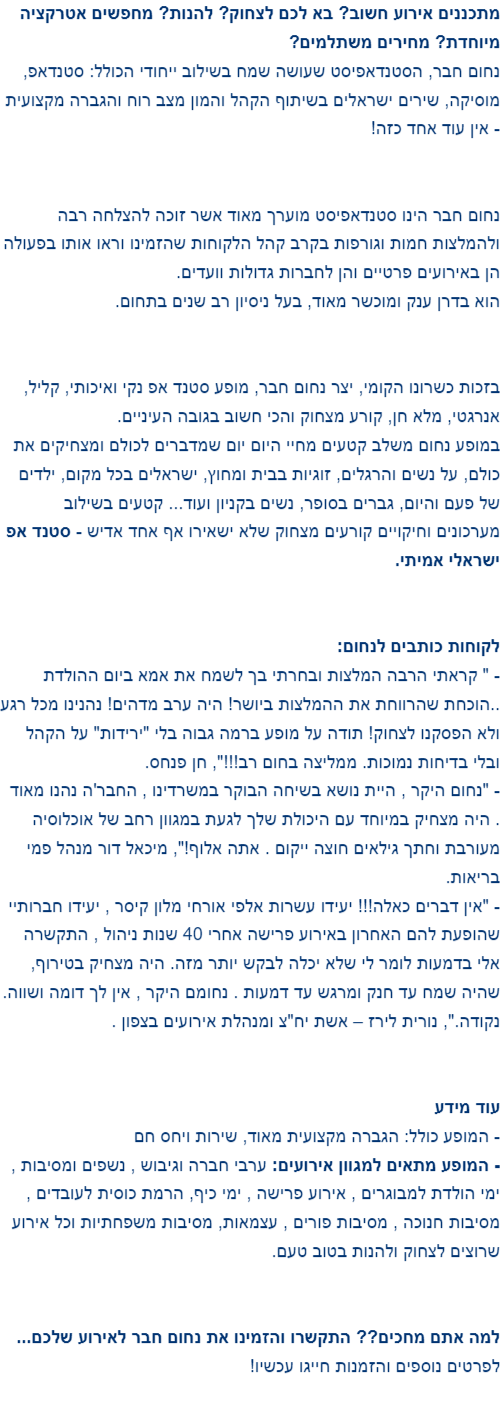 חוויה מצחיקה וקומית עם גדולי הסטנדאפיסטים. מופע אימפרוביזציה אינטרקטיבי